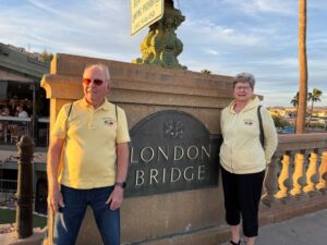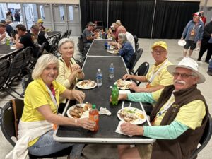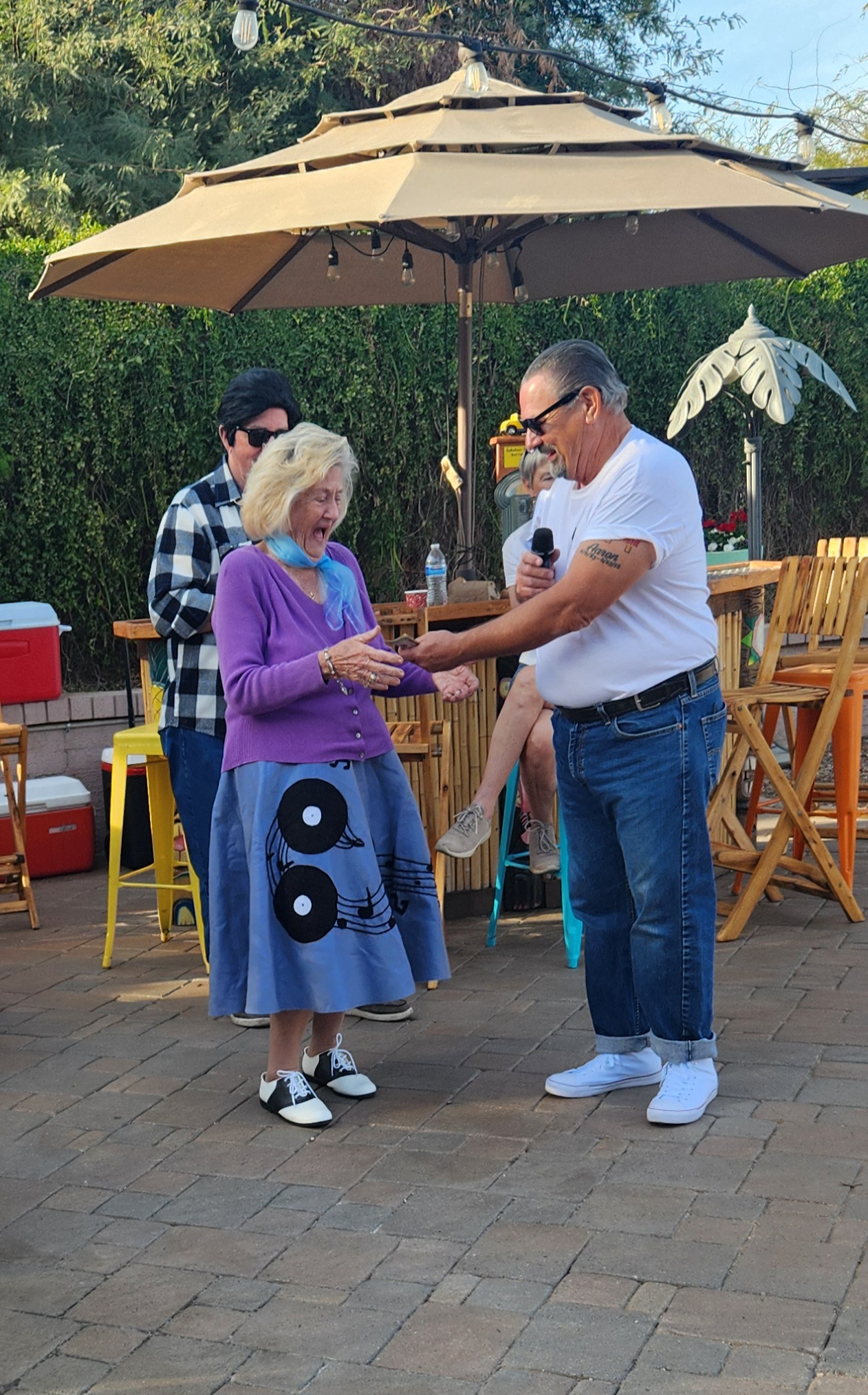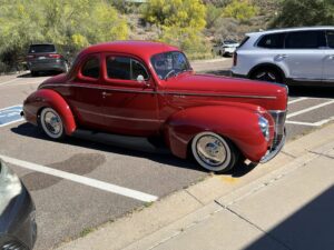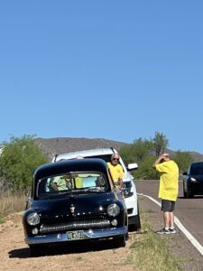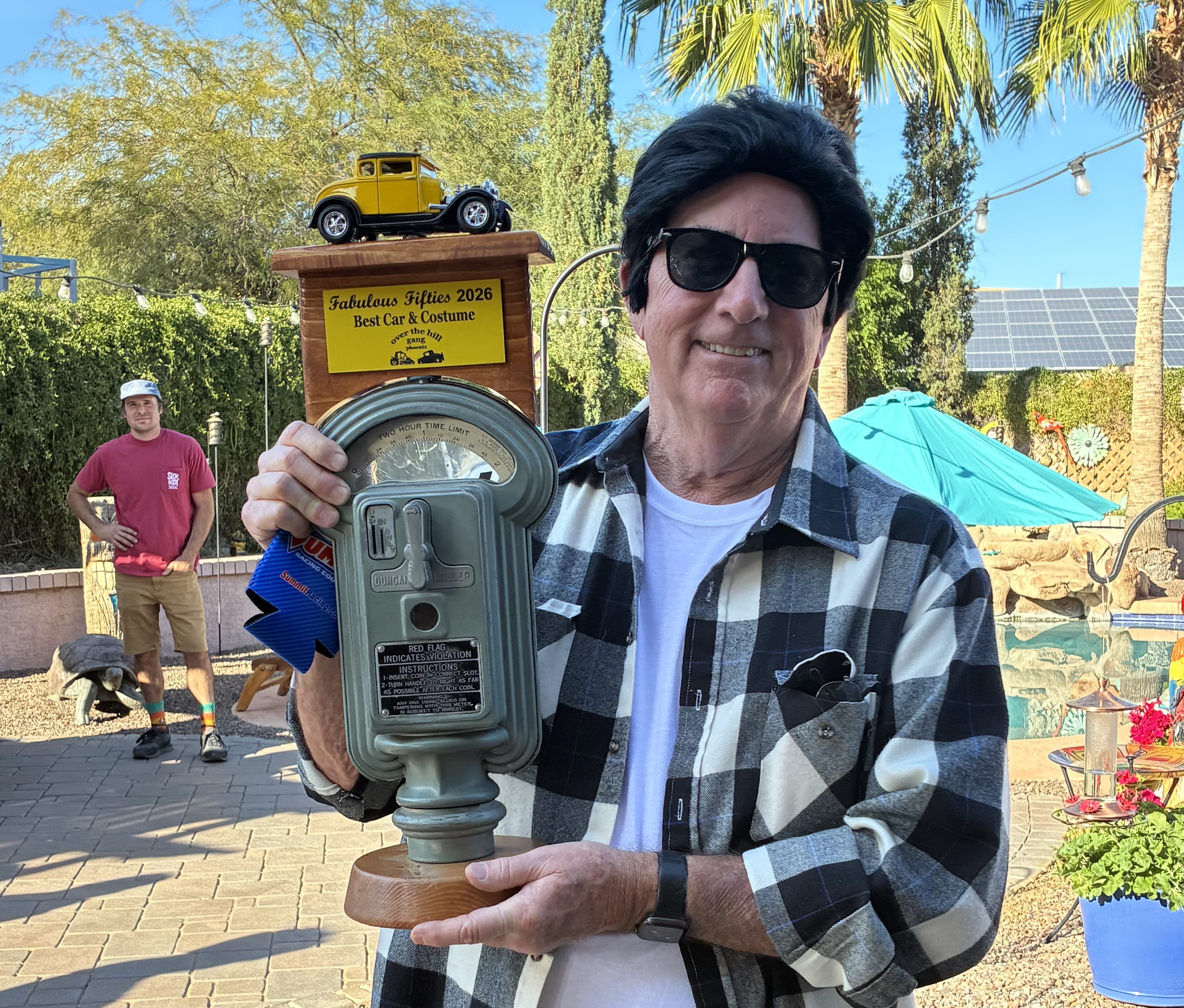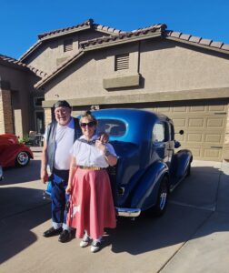 Jonathon of Metal/Body Classics was asked to serve as our car judge. His overall pick for attire and best car went to Mike and Suzy Arney for their 1956 Ford Victoria. The trophy was a parking meter that had been in Bonnie’s family for a long time. With Ron Boen’s expertise it was turned into a great trophy!