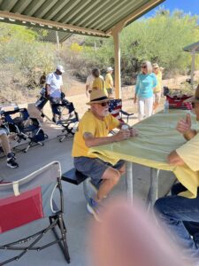 Another fun part of the day was the Hot Wheel races. Each person paid $5.00 to enter the races. The girls really showed the fellas how to race! Val Altgilbers won 1st place and a cash prize of $85.00. The other half of the pot will go to the club. Harriett Zeaman came in 2nd place winning a toy Coca Cola truck and trailer. Way to go ladies!