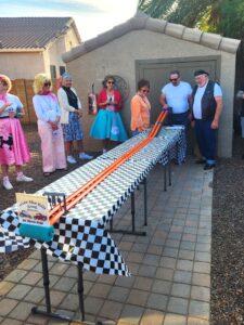 A Valentine’s Day Fabulous 50’s Putt was hosted by Don and Bonnie McDonald and Ron and Carol Boen on Feb 14th, at the Boen’s home. It was a near perfect weather day. There was approx. 60 people in attendance and 19 classic cars! The cars are always impressive. The outfits worn in the true 50’s style were outstanding!